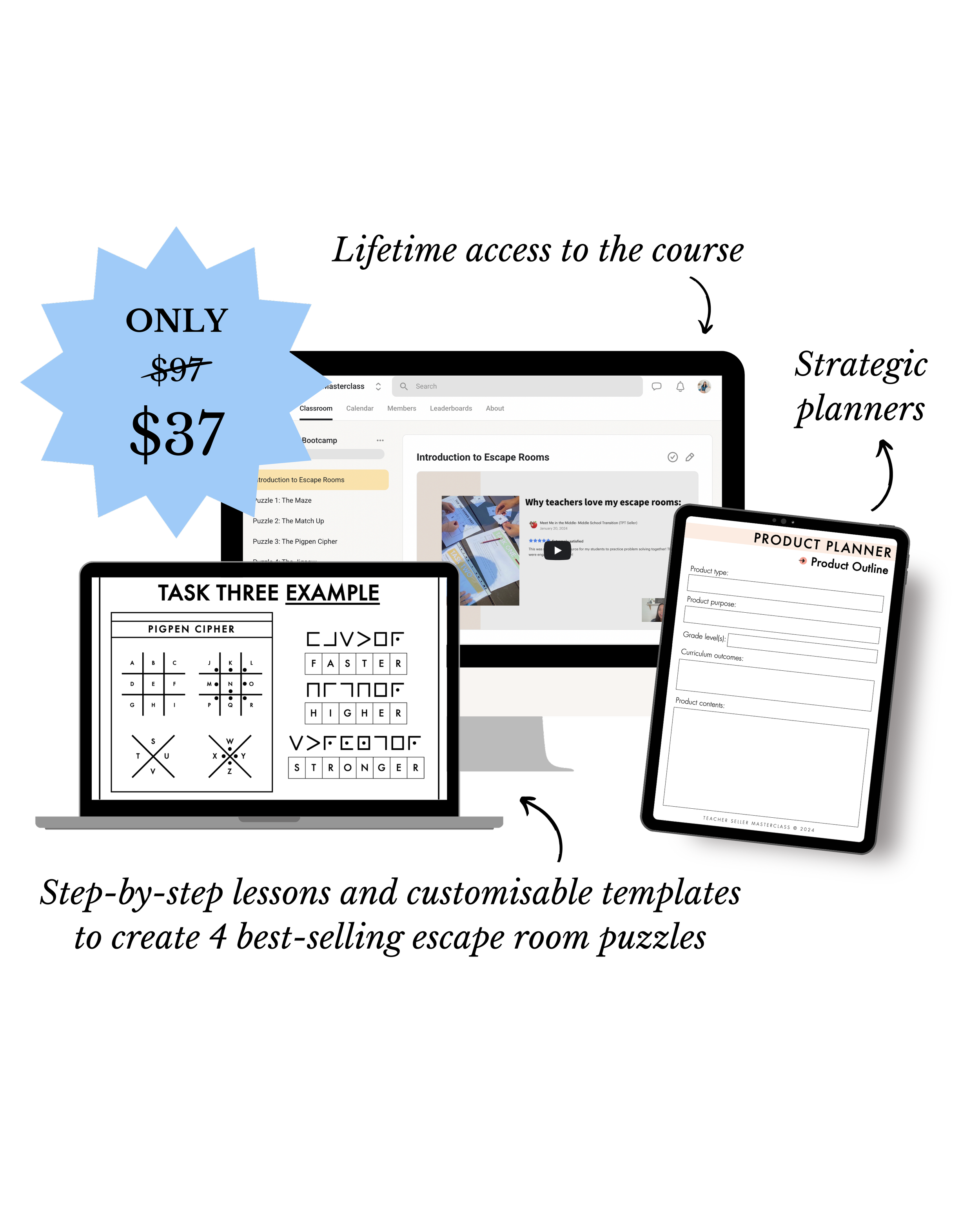 Escape rooms are interactive classroom challenges where students solve puzzles to unlock codes. Beyond being fun for students, escape rooms are one of the most profitable products on Teachers Pay Teachers, and inside the Escape Room Masterclass, you’ll learn exactly how to create and sell your own.