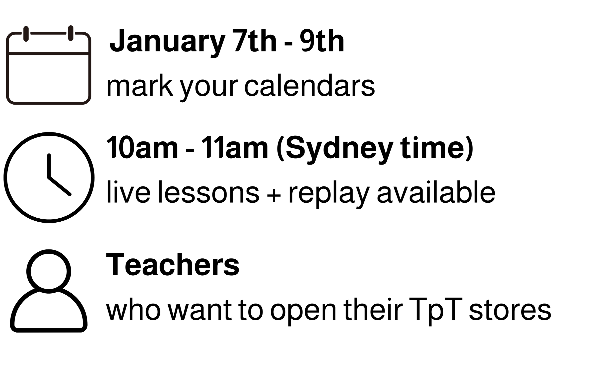 ✔ 3 LIVE LESSONS that guide you through my 6-step framework for opening a TpT store